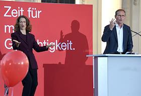 Парламентские выборы в Германии. Предвыборная агитация. Митинг партии Социал-демократической партии…