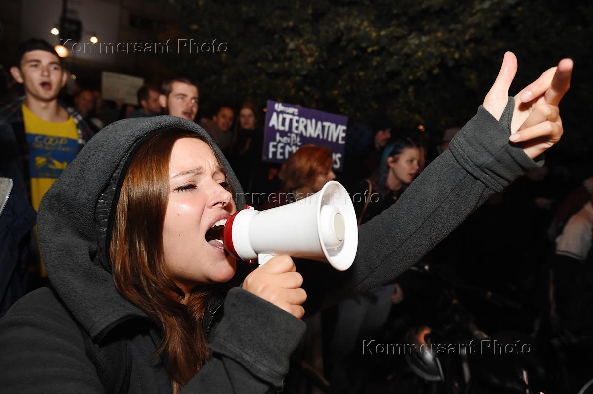 Парламентские выборы в Германии. Избиратели после окончания дня голосования.