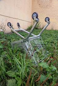 Жанровая фотография. Жанровая фотография. Тележка для продуктов из супермаркета валяется в кустах.