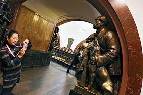 Жанровая фотография. Скульптура красноармейца на станции метро "Площадь революции".