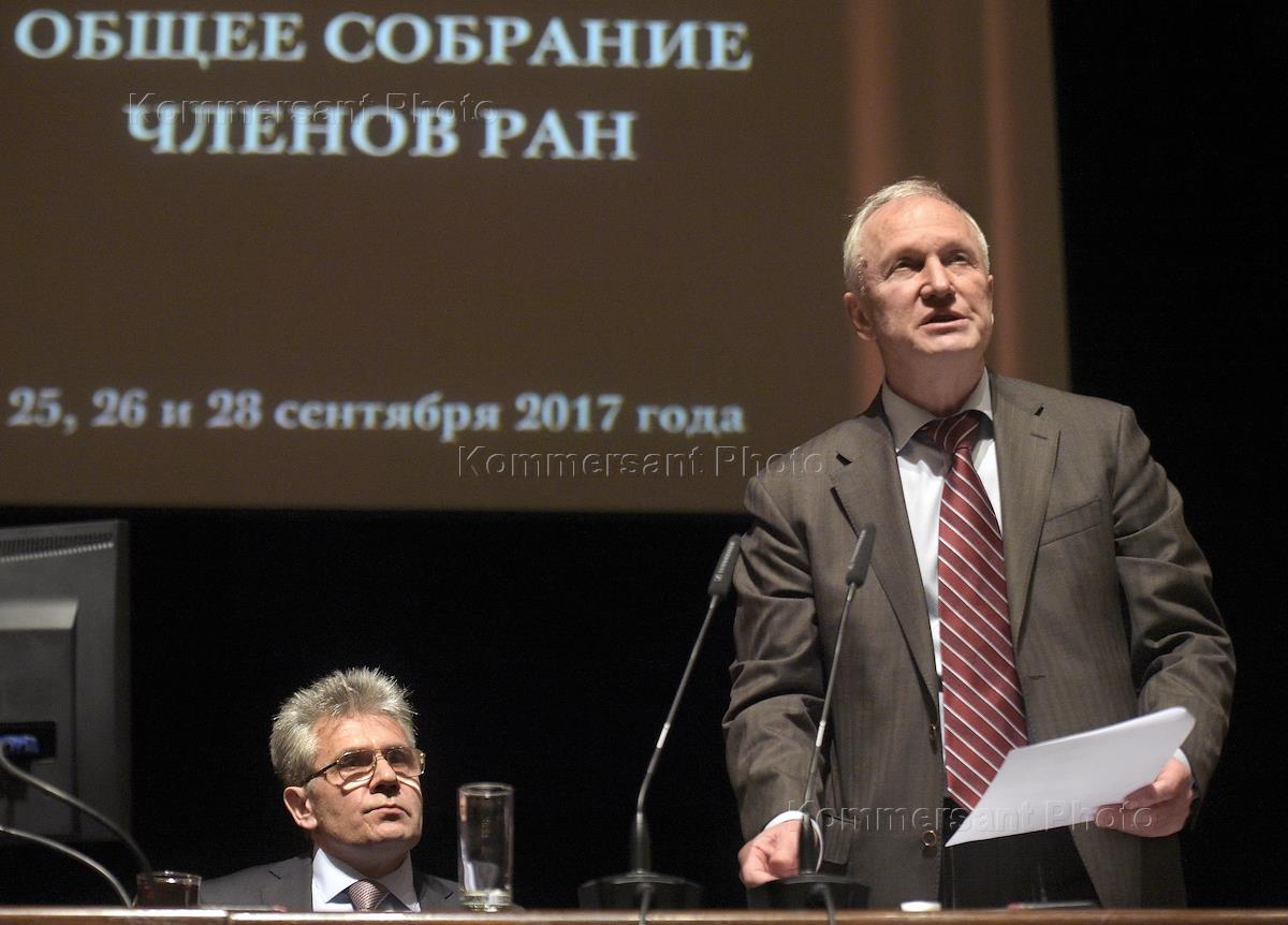 Подведение итогов выборов президента Российской академии наук (РАН) в Большом зале РАН. Исполняющий…