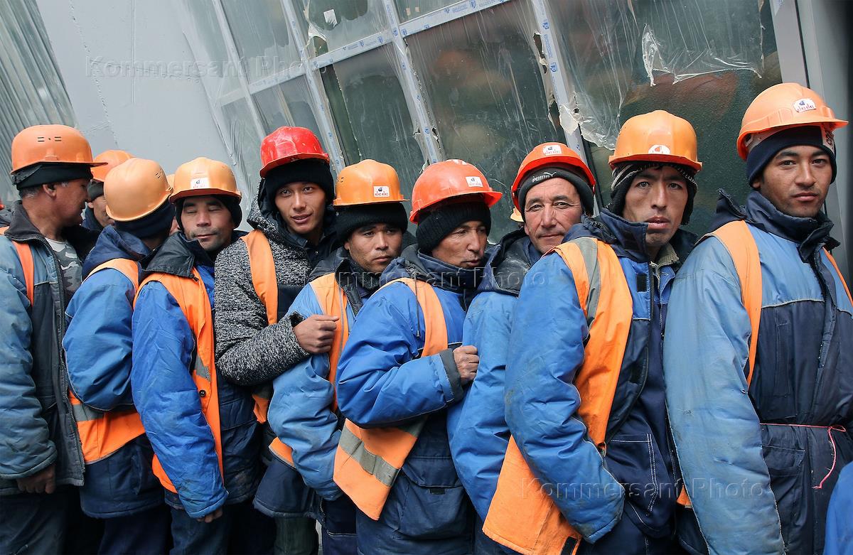 Строительство стадиона "Самара Арена" к Чемпионату мира по футболу 2018. Рабочие во время инспекции…