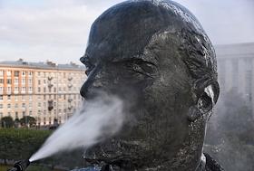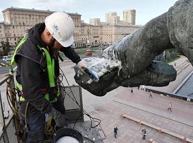 Жанровая фотография. Помывка памятника Владимиру Ленину на Московской площади Санкт-Петербурга.