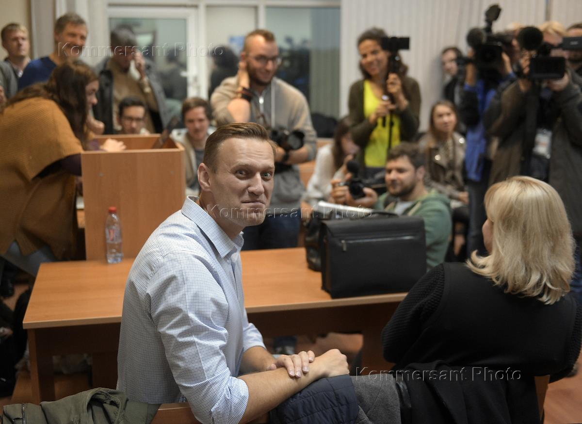 Правосудие Рассмотрение административного дела в отношении председателя партии "Партия прогресса" Алексея Навального, задержанного полицией 29 сентября за неоднократные призывы к участию в несогласованных акциях, в Симоновском районном суде.