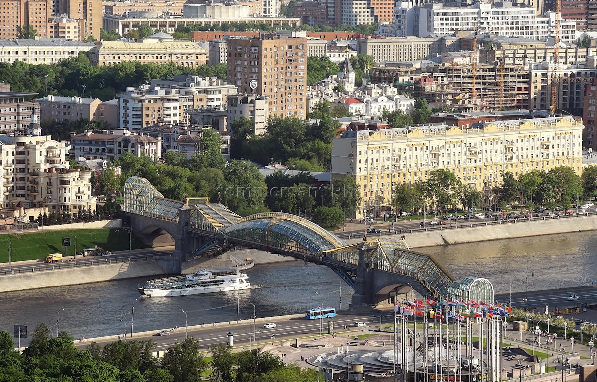 Виды Москвы. Пешеходный мост Богдана Хмельницкого (Киевский пешеходный мост) через Москву-реку.