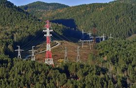 Жанровая фотография. Горный парк Рускеале в Карелии. Линия электропередач (ЛЭП) в горах.