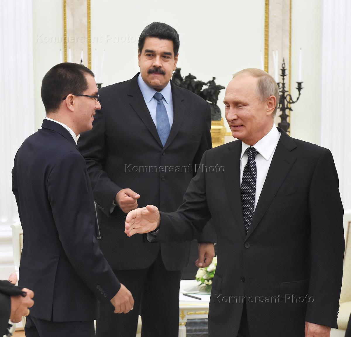 Президент России Владимир Путин (в центре) во время встречи с президентом Венесуэлы Николасом Мадуро…