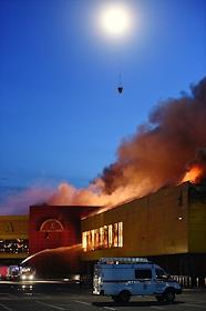 Пожар на рынке "Синдика" в районе МКАД в Строгино.