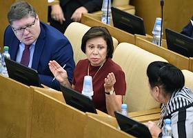 Пленарное заседание Государственной Думы (ГД) России. Слева направо: по труду, социальной политике и…