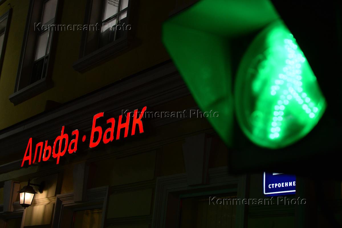 Отделение "Альфа-Банк" в Лаврушенском переулке. Зеленый сигнал светофора.