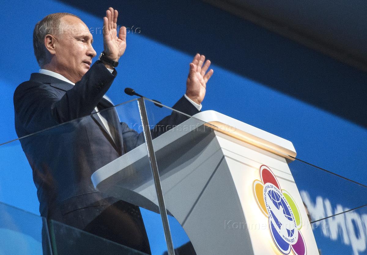 Рабочая поездка президента России Владимира Путина в Сочи. Торжественная церемония открытия XIX Всемирного фестиваля молодёжи и студентов.