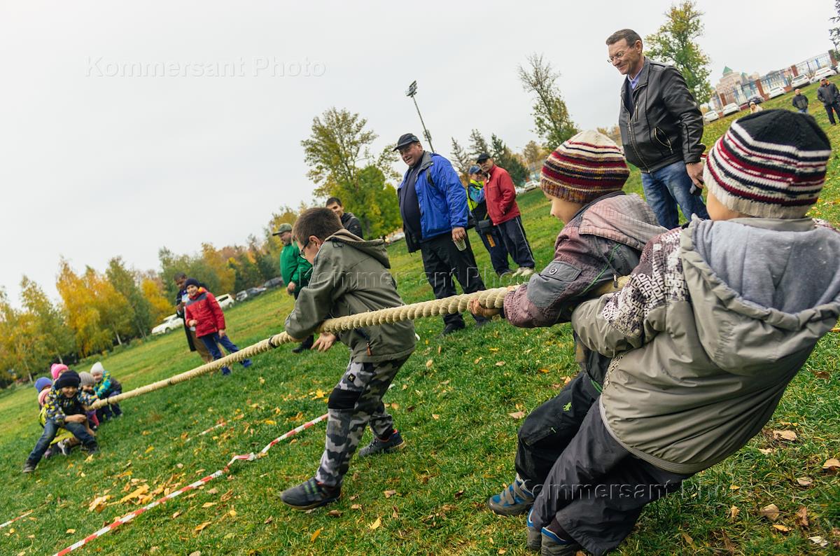 Участники фестиваля отцов "Папа фест" на территории ЦПКиО имени М.Горького. Соревнования по…