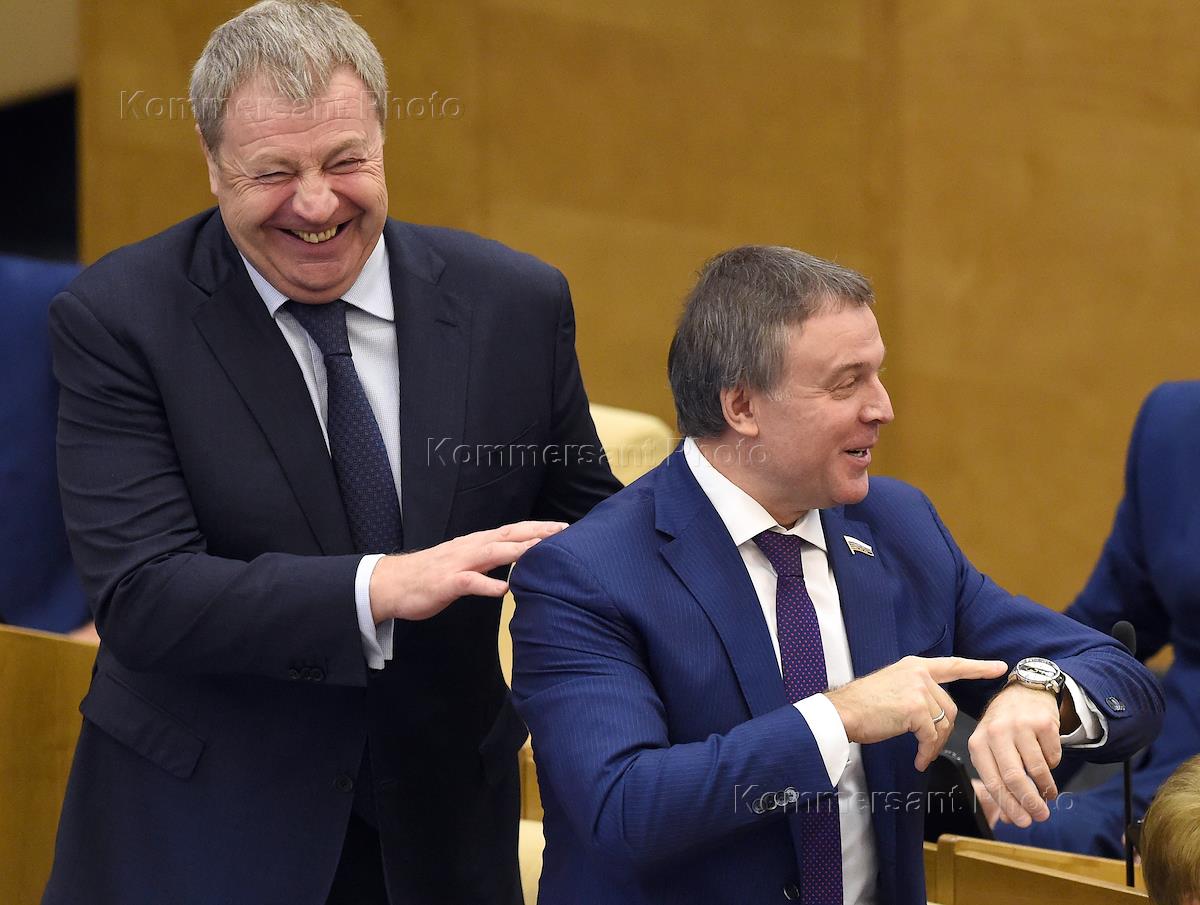 Пленарное заседание Государственной думы (ГД) России. Слева направо: член Комитета ГД по бюджету и…