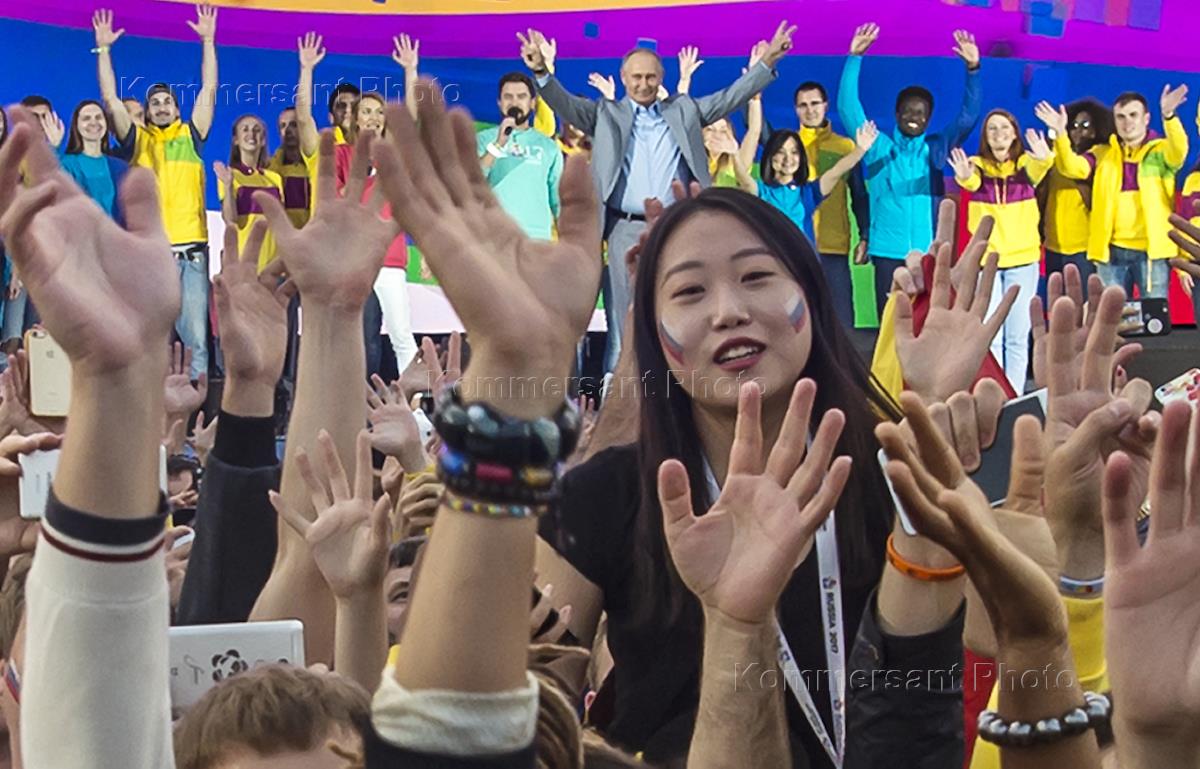 XIX Всемирный фестиваль молодежи и студентов в Сочи. День седьмой. Президент России Владимир Путин…