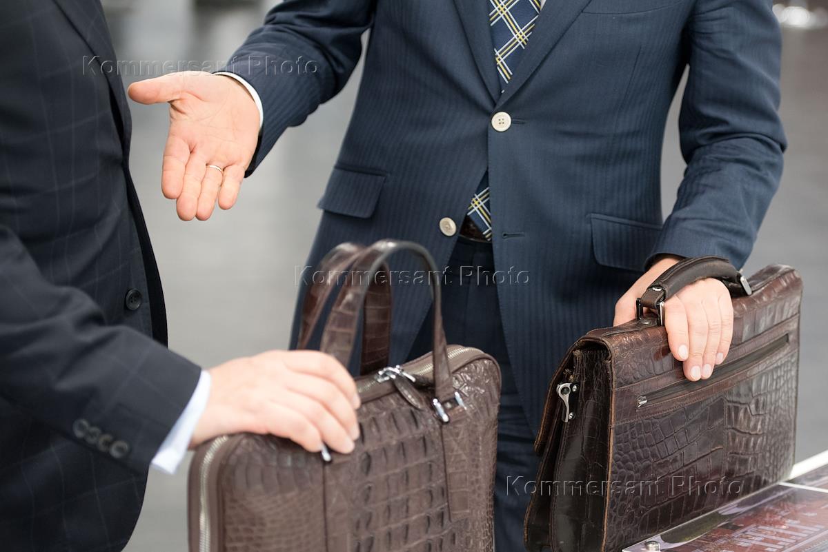 Жанровая фотография. Мужчины в деловых костюмах с кожаными портфелями.