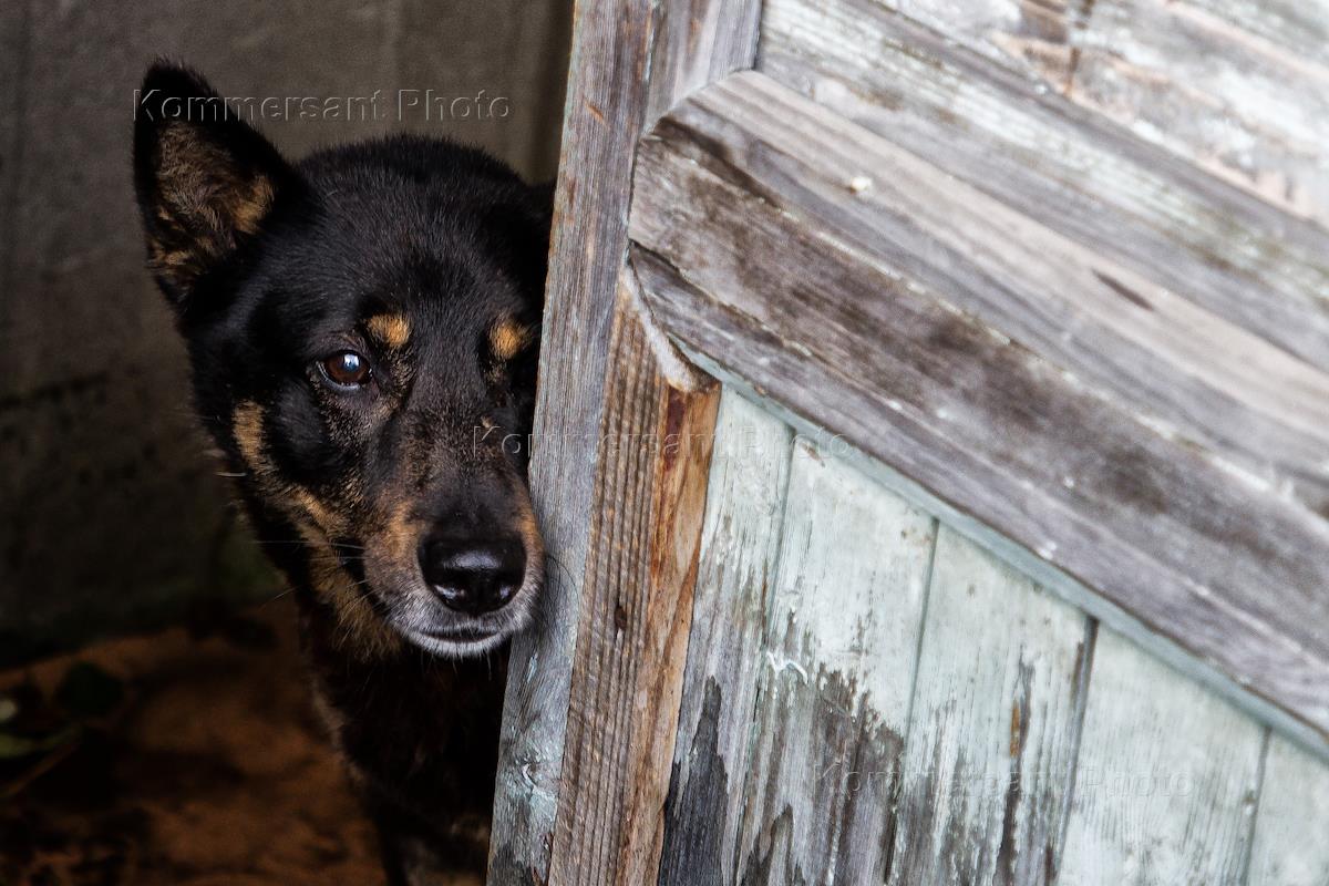 Жанровая фотография. Собака за забором частного дома.