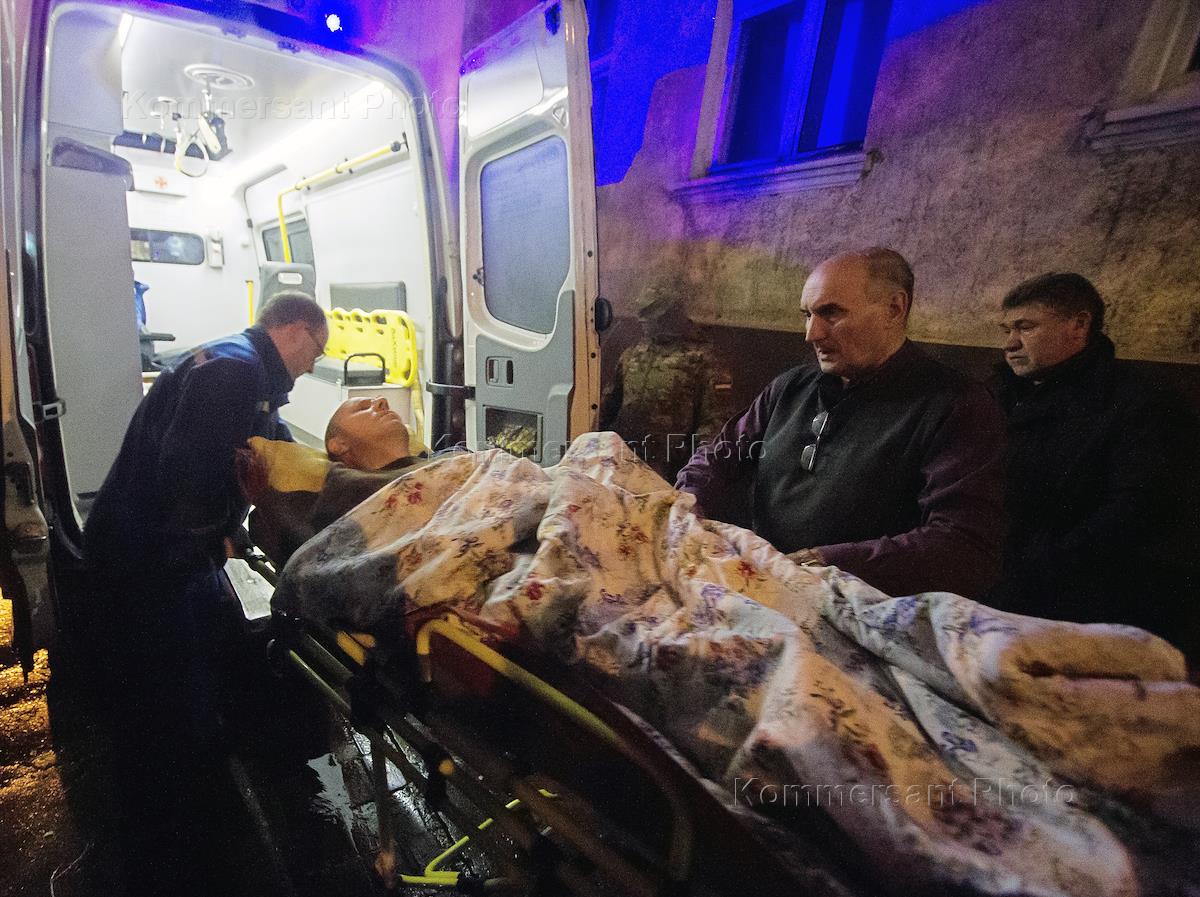 Сотрудники "Скорой помощи" во время госпитализации главного редактора газеты "Новые колеса",…