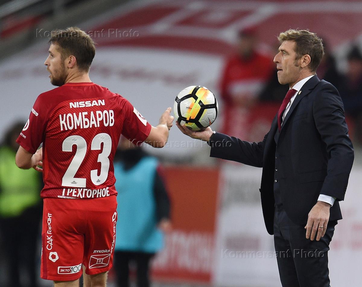 РОСГОССТРАХ Чемпионат России по футболу 2017/2018. 16-й тур. Матч между командами "Спартак" (Москва) - "Уфа" (Уфа) прошел на стадионе "Открытие Арена". Главный тренер команды "Спартак" Массимо Каррера (справа) и игрок команды "Спартак" Дмитрий Комбаров (слева) во время матча.