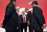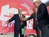 Международный форум левых сил, посвященный 100-летию Великой Октябрьской социалистической революции, прошел в гостинице "Ренессанс Москва". Слева направо: лидер Коммунистической партии России Геннадий Зюганов, председатель комитета Государственной думы (ГД) России по делам СНГ, евразийской интеграции и связям с соотечественниками Леонид Калашников и первый заместитель председателя ГД России Иван Мельников во время церемонии открытия форума.