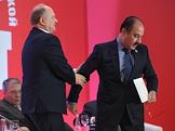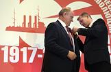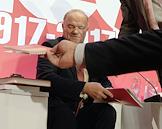 Международный форум левых сил, посвященный 100-летию Великой Октябрьской социалистической революции, прошел в гостинице "Ренессанс Москва". Лидер Коммунистической партии России Геннадий Зюганов (слева) во время церемонии открытия форума.