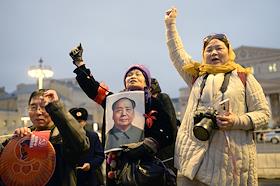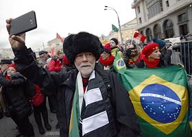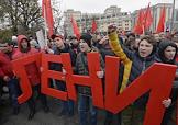 Участники праздничного шествия и митинга, посвященные 100-летию Октябрьской революции, на Театральной площади. Лидер движения "Левый фронт" Сергей Удальцов на митинге.