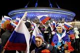 Товарищеский матч по футболу между сборными России и Испании на прошел стадионе "Санкт-Петербург". Болельщики сборной России перед началом матча.