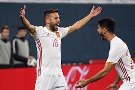 Товарищеский матч по футболу между сборными России и Испании прошел на стадионе "Санкт-Петербург". Игроки сборной Испании Жорди Альба (слева) и Марко Асенсио (справа) во время матча.