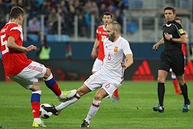 Товарищеский матч по футболу между сборными России и Испании прошел на стадионе "Санкт-Петербург". Игрок сборной Испании Начо (в центре) во время матча.