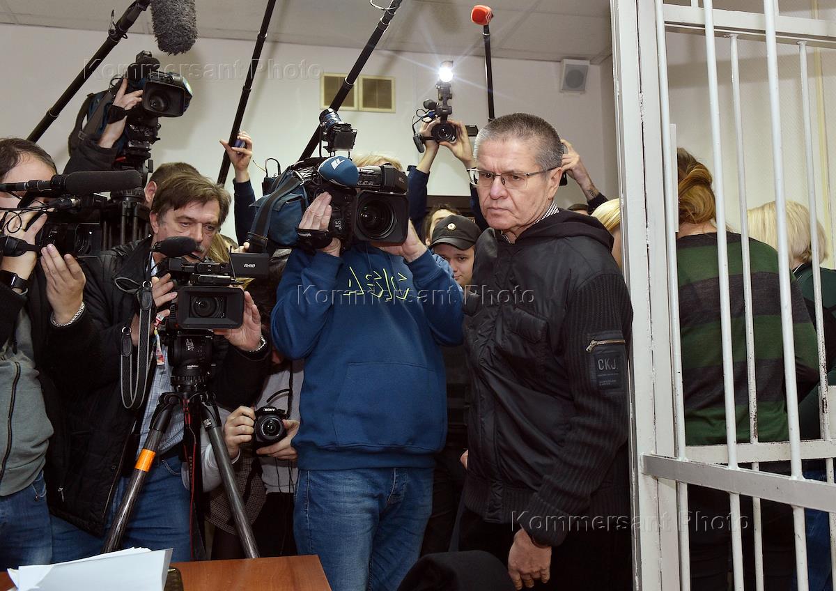 Бывший министр экономического развития России Алексей Улюкаев, обвиняемый в получении взятки в два миллиона долларов, во время заседания в Замоскворецком районном суде.