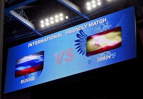 Товарищеский матч по футболу между сборными России и Испании прошел на стадионе "Санкт-Петербург". Информационное табло матча.