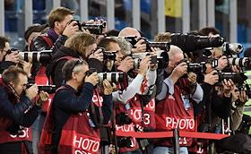 Товарищеский матч по футболу между сборными России и Испании прошел на стадионе "Санкт-Петербург". Фотожурналисты во время матча.