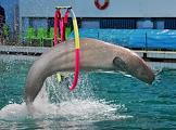 Петербургский дельфинарий. Дельфин-афалина в бассейне во время выступления.
