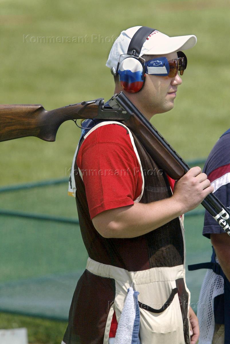 Олимпиада 2004. Участник олимпийской сборной России Алексей Алипов на соревнованиях по стендовой стрельбе. Алексей Алипов принес первую золотую медаль сборной команде России на XXVIII летней Олимпиаде в Афинах.