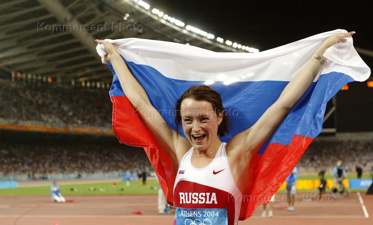 Летние Олимпийские игры 2004 года в Афинах. Участница олимпийской сборной России по легкой атлетике Елена Слесаренко.