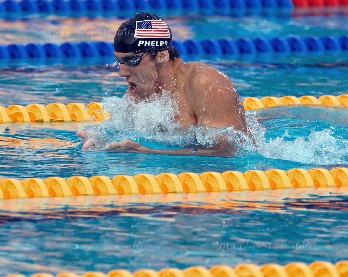 Летние XXVIII Олимпийские игры 2004 года. Американский пловец Майкл Фелпс (слева) во время соревнований.