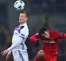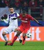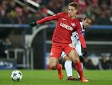 Лига чемпионов УЕФА сезона -2017/2018. Групповой этап. Матч между командами "Спартак" (Москва, Россия) - "Марибор" (Марибор, Словения) прошел на стадионе "Открытие Арена". Игрок команды "Спартак" Ивелин Попов (в центре) во время игры.