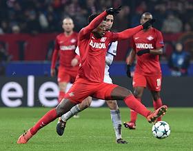 Лига чемпионов УЕФА сезона -2017/2018. Групповой этап. Матч между командами "Спартак" (Москва, Россия) - "Марибор" (Марибор, Словения) прошел на стадионе "Открытие Арена". Игрок команды "Спартак" Зе Луиш (в центре) во время игры.