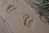 Мыс Заяцкий на берегу Белого моря. Следы медведя на песке.