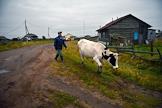 Приморский район. Белое море. Житель деревни Луда с коровой.