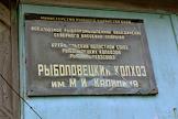 Деревня Луда. Табличка на здании старого правления рыболовецкого колхоза.