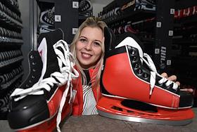 Церемония открытия катка в Парке культуры и отдыха имени Горького (ЦПКиО). Служащая в пункте проката коньков во время церемонии.