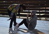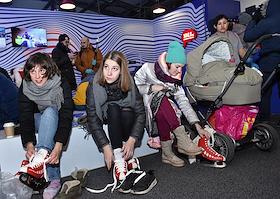 Церемония открытия катка в Парке культуры и отдыха имени Горького (ЦПКиО). Посетители в раздевалке перед началом церемонии.