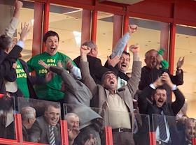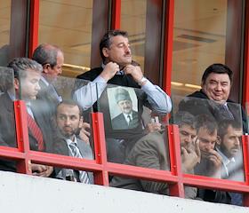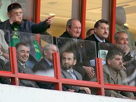 Исполняющий обязанности президента Чеченской республики Сергей Абрамов (в центре) на трибуне болельщиков во время первого отборочного матча кубка УЕФА между командами "Терек" (Грозный) и "Лех" (Польша). Матч прошел на стадионе "Локомотив".