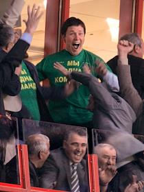 Кандидат на пост президента Чеченской Республики, министр внутренних дел республики Алу Алханов на трибуне болельщиков во время первого отборочного матча кубка УЕФА между командами "Терек" (Грозный) и "Лех" (Польша). Матч прошел на стадионе "Локомотив".