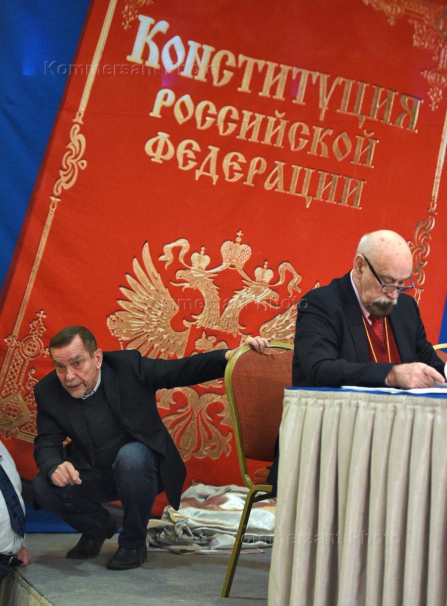 Всеросийский съезд правозащитников в защиту прав человека прошел в гостинице "Космос". Глава комиссии Совета по правам человека (СПЧ) по военно-гражданским отношениям Сергей Кривенко (слева) и правозащитник, член Московской Хельсинкской группы Валерий Борщев (справа) во время работы съезда.