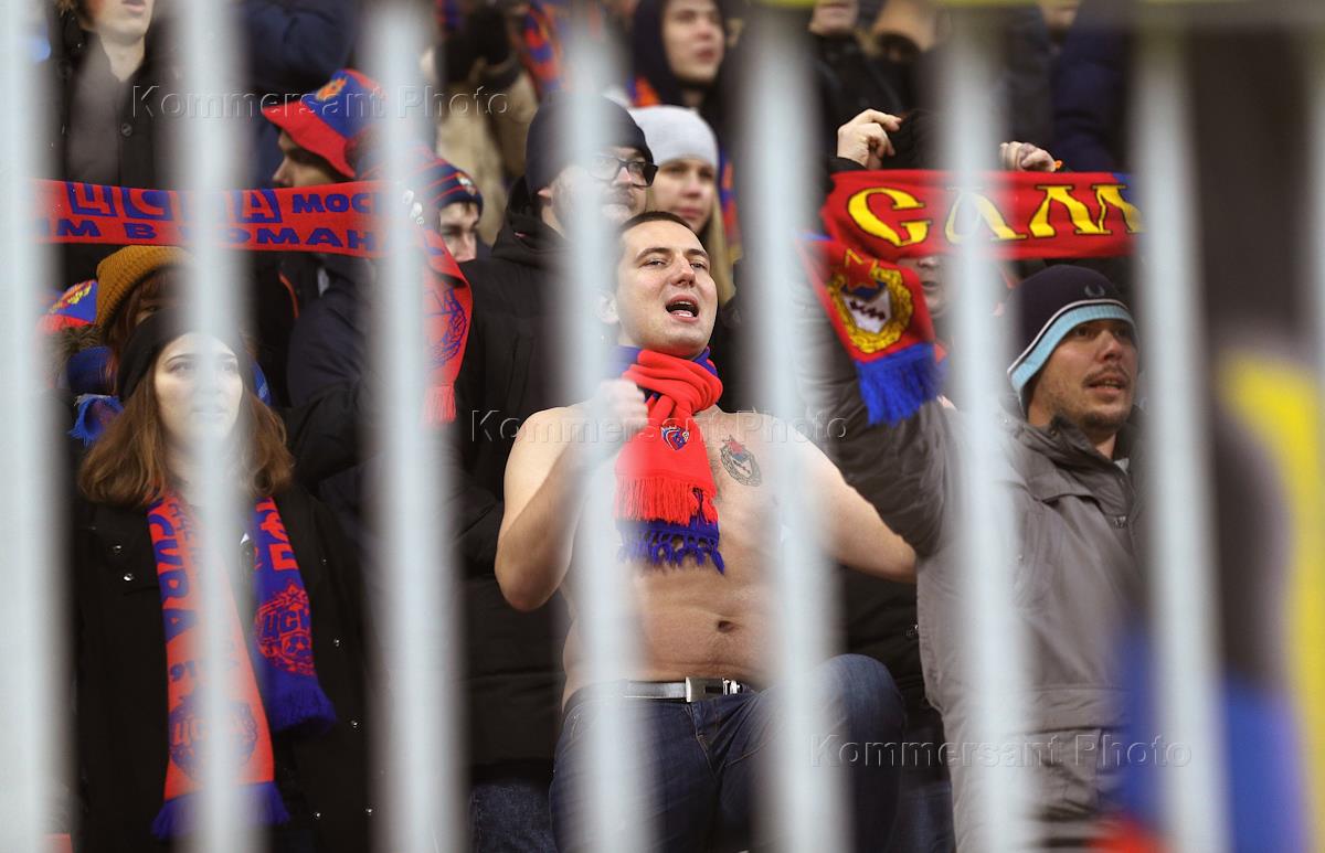 РОСГОССТРАХ Чемпионат России по футболу 2017/2018. 18-й тур. Матч между командами "Рубин" (Казань) и ЦСКА (Москва) прошел на стадионе "Казань Арена". Болельщики команды ЦСКА на трибуне во время матча.