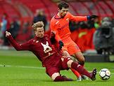 РОСГОССТРАХ Чемпионат России по футболу 2017/2018. 18-й тур. Матч между командами "Рубин" (Казань) и ЦСКА (Москва) прошел на стадионе "Казань Арена". Слева направо: игрок команды ЦСКА Витиньо, игрок команды "Рубин" Егор Сорокин, игрок команды ЦСКА Понтус Вернблум и игрок команды "Рубин" Федор Кудряшов во время матча .