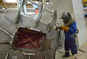 Пресс-тур от компании Siemens на завод "Уральские локомотивы". Генеральный директор ООО "Уральские локомотивы" Александр Салтаев во время осмотра производства.