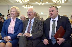 VIII Всероссийский конгресс пациентов прошел на площадке Crystal BallRoom. Заместитель министра здравоохранения России Татьяна Яковлева (слева) и президент Национальной медицинской палаты Леонид Рошаль (в центре) во время конгресса.