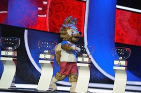 Репетиция церемонии жеребьевки группового этапа чемпионата мира по футболу 2018 года прошла в Государственном Кремлевском дворце. Ростовая кукла символа чемпионата мира по футболу 2018 года Волка Забиваки во время репетиции.